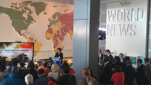 Вчера беше представен доклада „Свобода на пресата през 2013г.“ на Freedom House пред голяма група журналисти от цял свят, където и нашата група успя да се вреди да присъства.