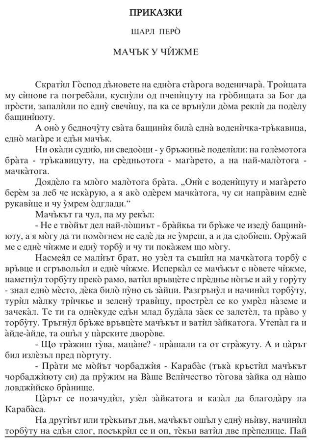 „Мачък у чижме” е заглавието на приказката на Шарл Перо „Котаракът в чизми” на трънски. Тя е публикувана в третото преработено и допълнено издание на книгата „Трънските думи - речник на регионалния говор”.