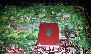 Сутринта преди началото на службата, на специално по-високо място в средата на храма се издига "гробът" Христов, а на престола се поставя светата Плащаницa - изкусно извезан плат с изображението на положения в гроба Спасител. Върху плащаницата се поставят Евангелието, Кръстът и много цветя.