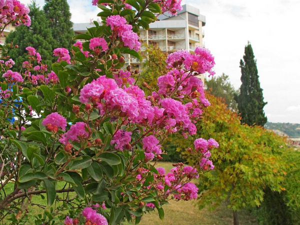 Не са много дърветата, които цъфтят през този сезон, но сред тях Лагерстремията (Lagerstroemia indica), наричана още индийски люляк, заема особено място.