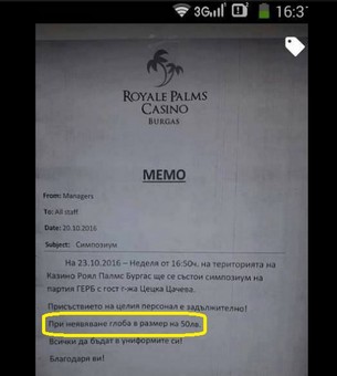 Кампания по герберски - Цецка Цачева на симпозиум на ГЕРБ в казино "Роял Палмс" в Бургас. Присъствието на целия персонал е задължително! Ако някой не дойде - глоба 50 лева!